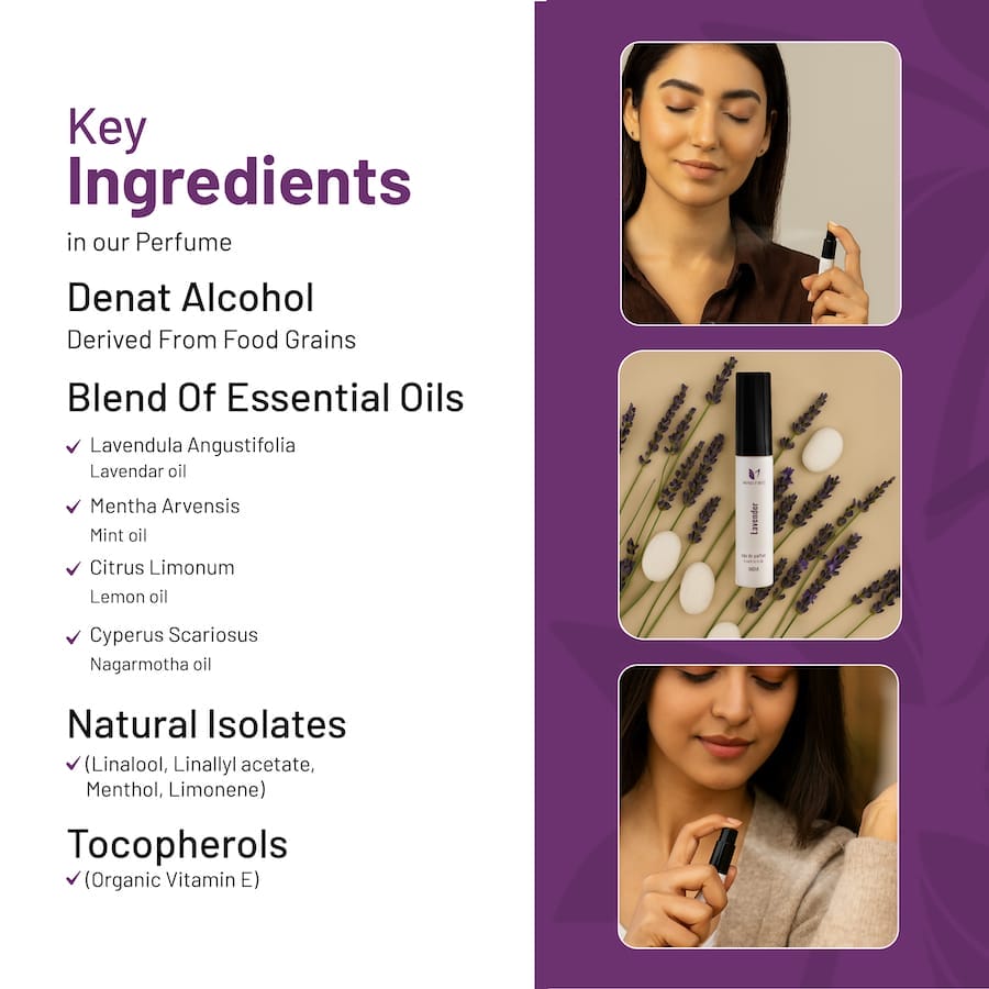 Our single odour essential oil perfumes and deodorants are conceptualized to offer a complete experience of Patchouli, Lavender and Lemongrass fragrance. You can experience a blast of fragrance after wearing and then it stays in a subtle way. When one wears natural same fragrance perfume and deodorant together then one gets a complete fragrance experience.